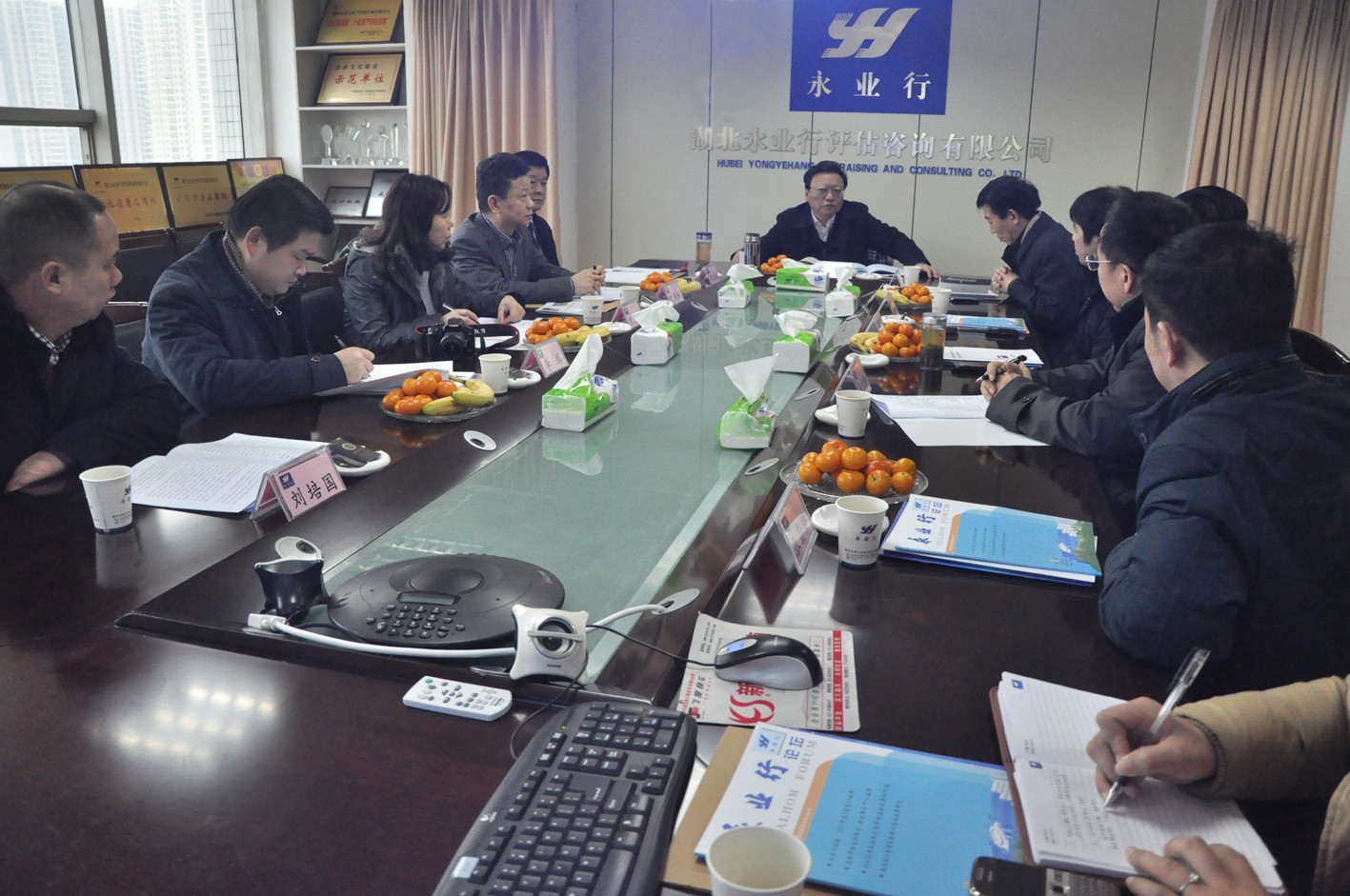 广水商会副会长、永业行董事长方国成,永业行总裁潘世炳热情接待了涂主席一行。董事长方国成代表永业行致辞,向省、市各有关部门给予的关怀与支持表示感谢。总裁潘世炳介绍了永业行发展概况及战略规划,分析了评估咨询行业现状及存在的问题,同时汇报了担任省政协委员以来的履职情况。涂主席对永业行发展给予了高度评价和充分肯定,勉励永业行做湖北现代服务业、评估咨询行业和民营经济的三面旗帜,希望永业行继续拓展市场、学习创新,诚信公正,储备人才,提高核心竞争力,进一步做大做强,“高举三面旗帜、独领风骚”,实现永业行“百年老店”的梦想。他还提出将对评估咨询行业存在的问题进行专项调研、形成提案逐步解决。