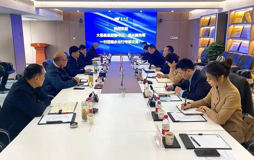 2021年12月11日,大悟县县委副书记、县长鲍克明一行莅临永业行考察交流。永业行党委书记、董事长潘世炳,轮值总裁王琴,助理总裁金建华,永业行中法城(武汉)有限公司常务副总经理陶泽普等热情接待考察组并参加座谈。